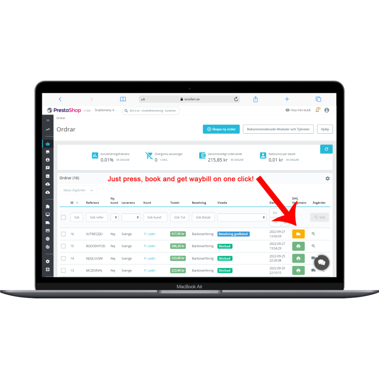 Har du tröttnat på att kopiera och klistra in adresser? För under 10 kronor per dag får du en fullständig integration med DHL Sverige. Du kan enkelt hantera dina frakter direkt från Prestashop och printa fraktetiketter och få in spårningsnummer. Billigare till våra avtalskunder. Läs mer nedan...