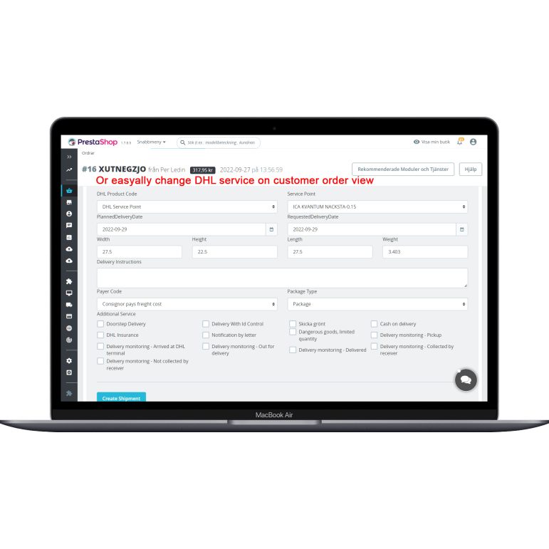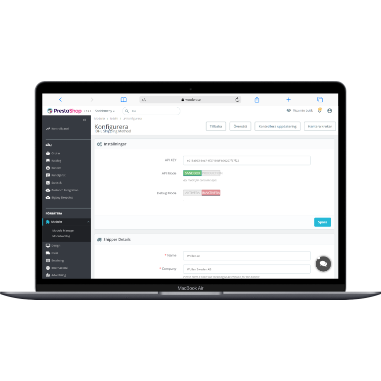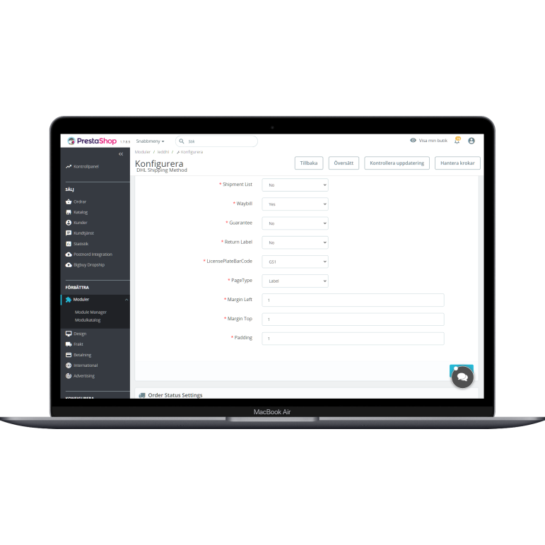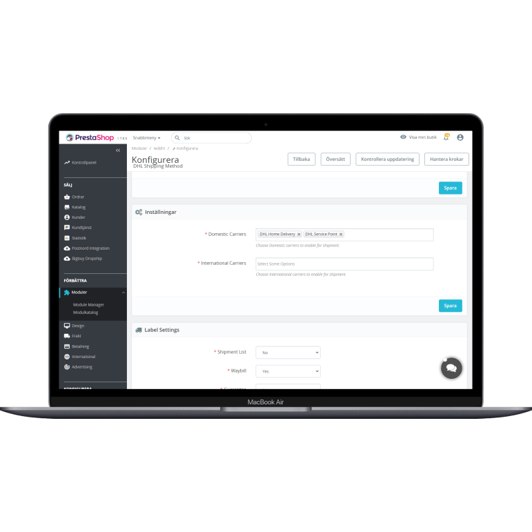 Modul/tjänst - DHL Sverige API Fraktintegrering för Prestashop